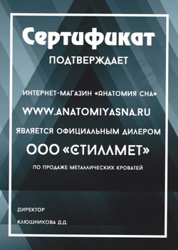 «Анатомия сна» – европейское качество, доступное сегодня каждому! На протяжении 9 лет мы обслуживаем покупателей по всей России. За этот период мы смогли завоевать доверие на отечественном рынке. Многолетний опыт, слаженная работа команды компании, безупречная репутация, множество положительных отзывов от новых и постоянных клиентов, позволяют нам сегодня предложить покупателям наилучшие условия обслуживания, включая разумные цены и развитую логистику. Также мы открыты для сотрудничества с оптовыми заказчиками и производителями.